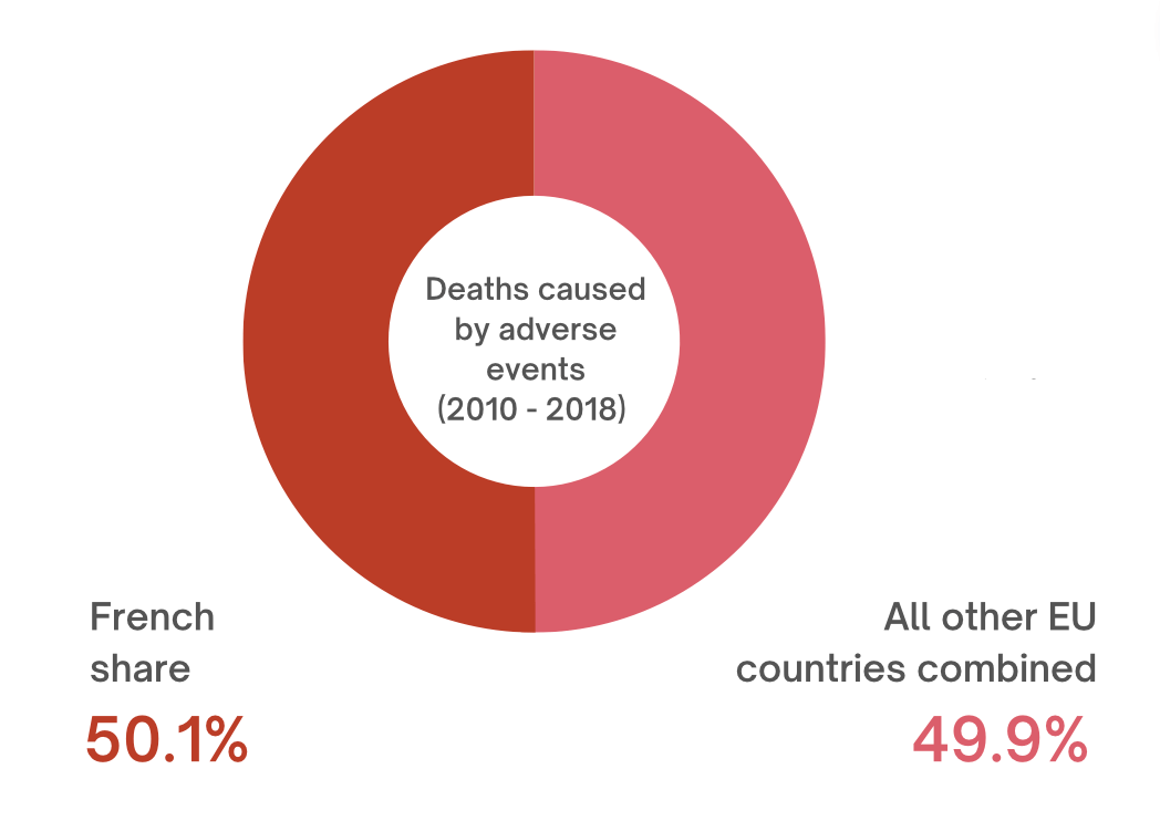 The Eurostat information shows that a little over 800 deaths are caused by ADRs in Europe with more than 500 of those originating in France, per year.