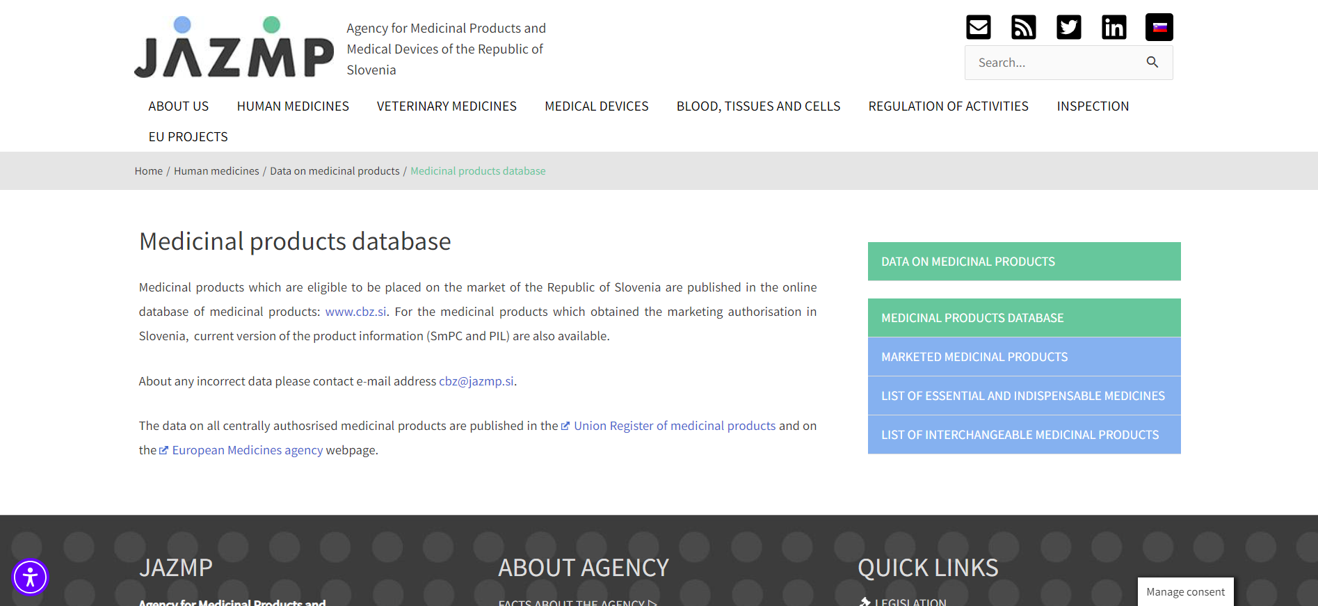 This is the primary legal framework for medicinal products in Slovenia, it outlines the conditions for the quality, safety, and efficacy of medicinal products.