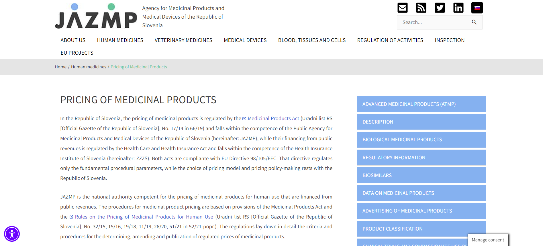 If you’re interesting in the field of pricing, visit this page and you can learn more about maximum allowed prices of medicinal products, list of regulated prices and more. To get to these mentioned sections, use the sidebar on the right side.