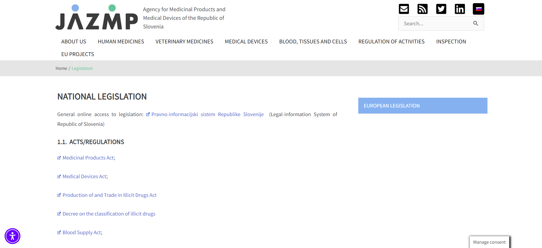 List of every important legislation of the Republic of Slovenia regarding health, for you the most important one will probably be the very first, which Medicinal Products Act. As always, you will find an overview of the most important legislation on our website below.
