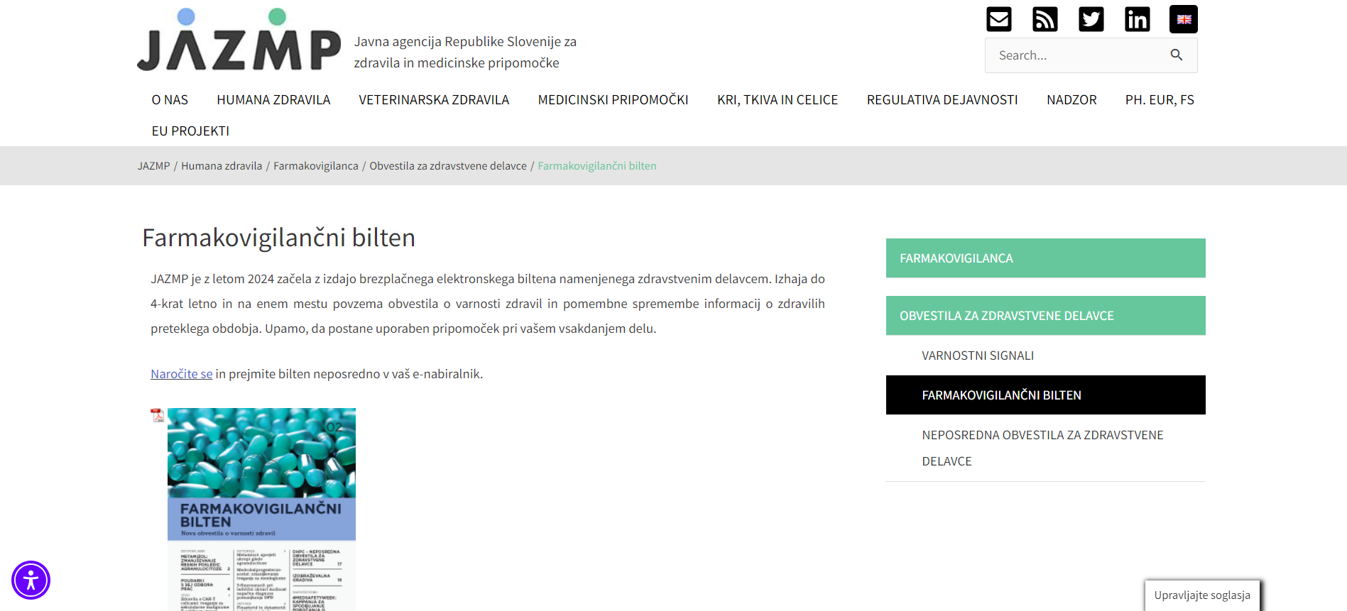 JAZMP has launched a free electronic newsletter aimed at healthcare professionals, providing them with essential updates on new drug safety notifications and important changes to drug information, that you can have delivered directly to your e-mail, only in Slovenian.