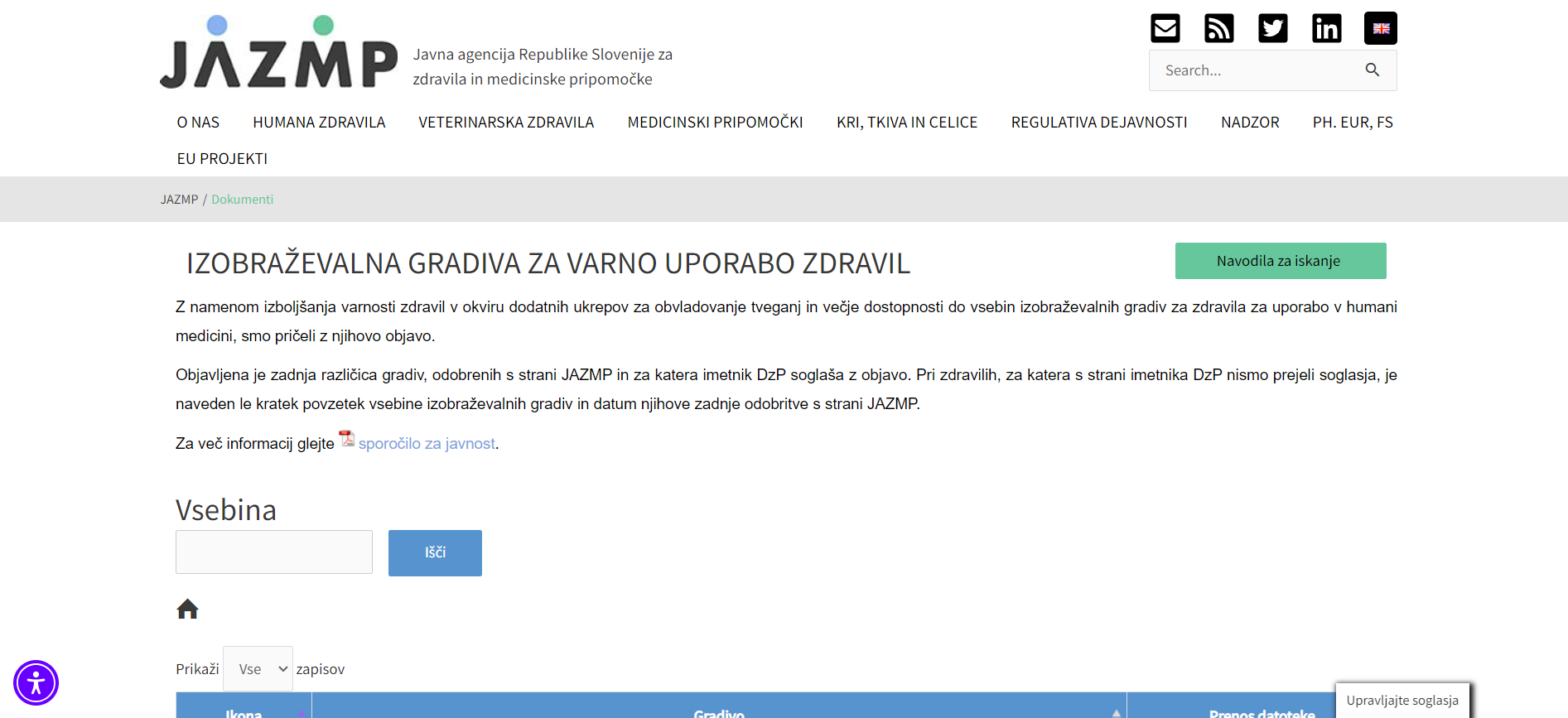 JAZMP’s annual reports can be found in Letna poročila, reports are sorted by year and each report can be downloaded as PDF document.