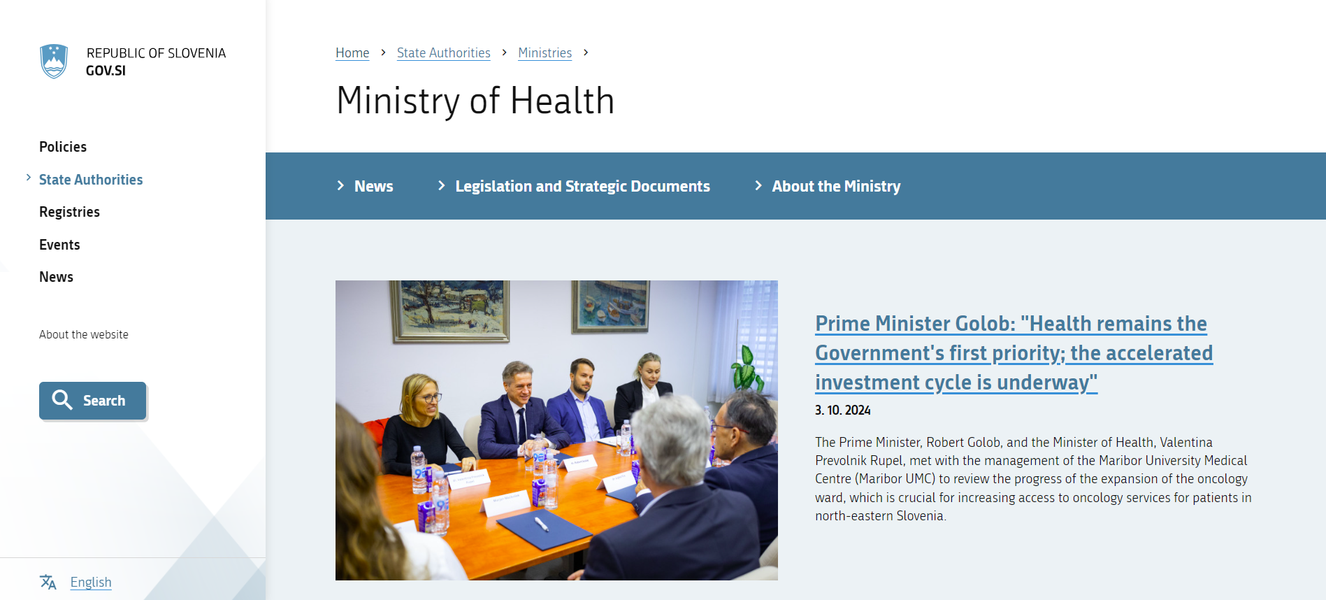 Ministry’s website: https://www.gov.si/en/state-authorities/ministries/ministry-of-health/