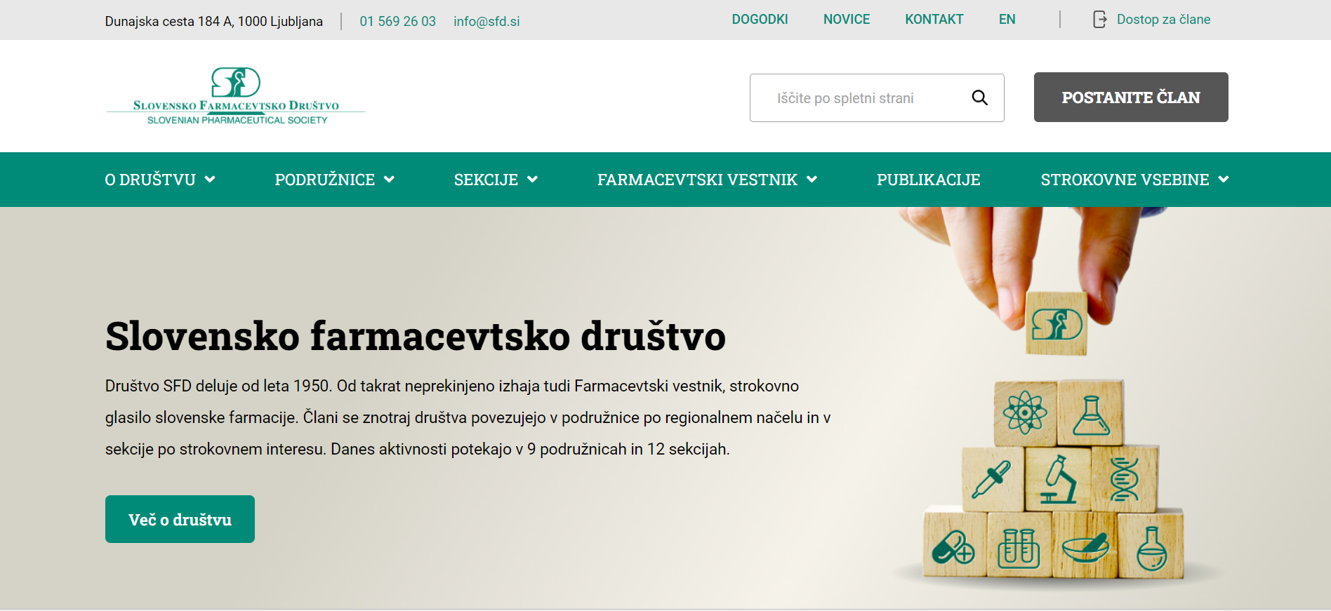 Read more about SFD on their website, visit their page dedicated to publications or to Farmacevtski vestnik (Journal of Pharmacy), which is divided into sections, where the first one is covering years from 1950 to 2004 and the second one from 2005 to 2024, though only the second one has actual PDFs of the journal. It is published five times a year and it’s in Slovenian.