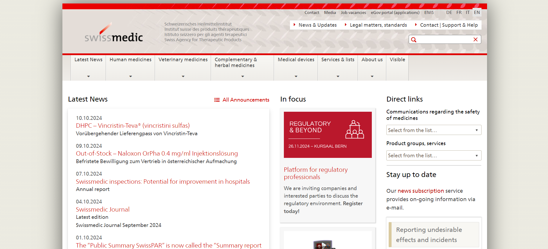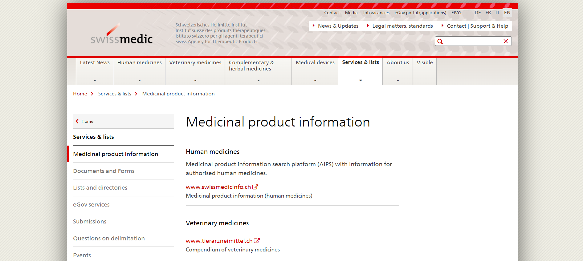 This agency is responsible for the authorization and supervision of drugs and medical products. Swissmedic is headquartered in Bern.