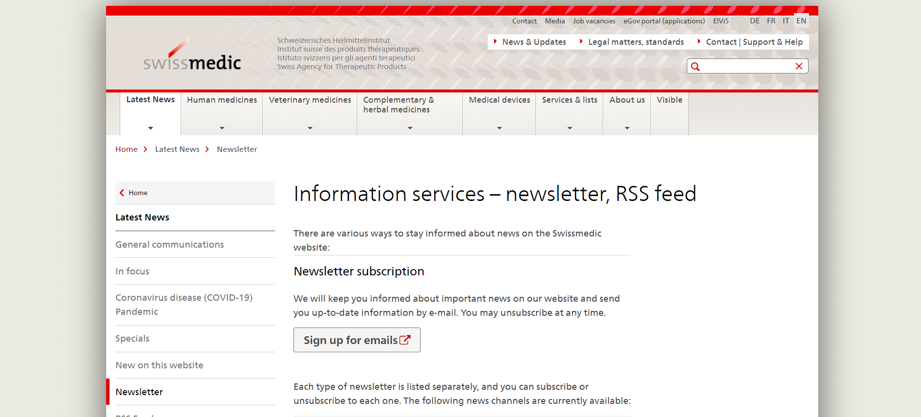 There are five different types of their newsletter, each of them is listed separately. The most interesting for you will probably be one reagrding safety of medicines.