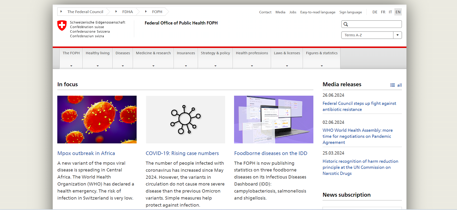FOPH website: https://www.bag.admin.ch/bag/en/home.html
