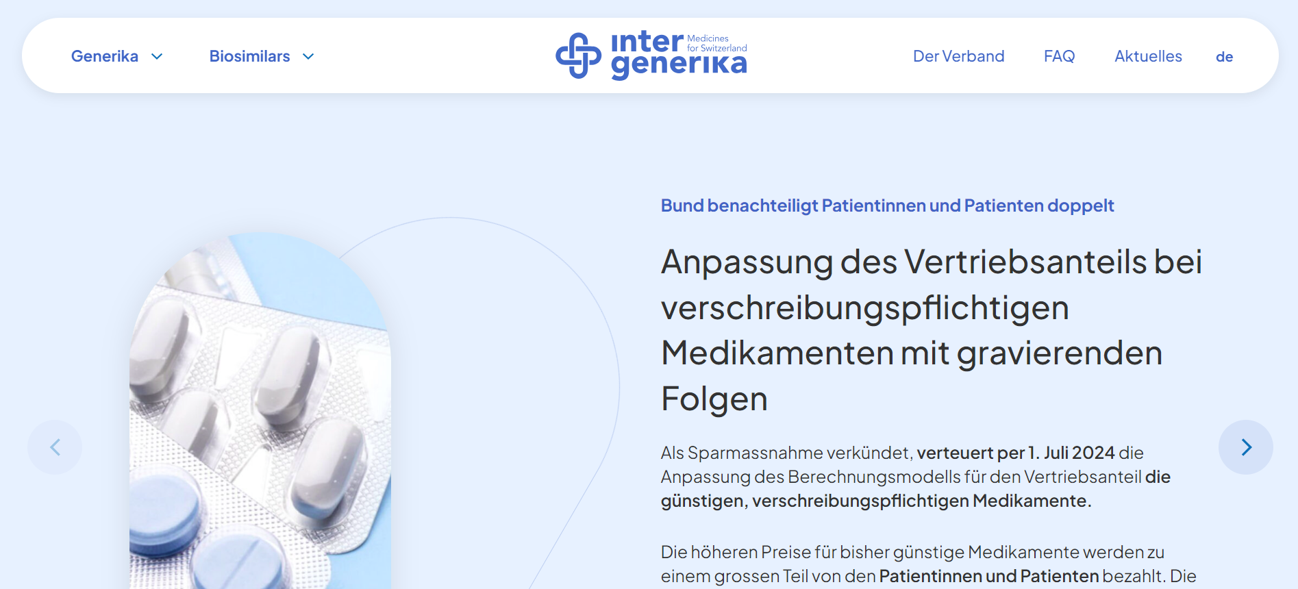 Visit their FAQ on Generics and Biosimilars and explore the differences between market for original drugs and market for generic drugs, website has only French and German version.